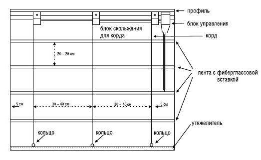 Верхнее кольцо для шнура подъемного механизма рекомендуется пришивать не ближе 15 см от верхнего края шторы. Это обеспечит более четкую работу механизма, исключит произвольное наматывание шнура на блоки.