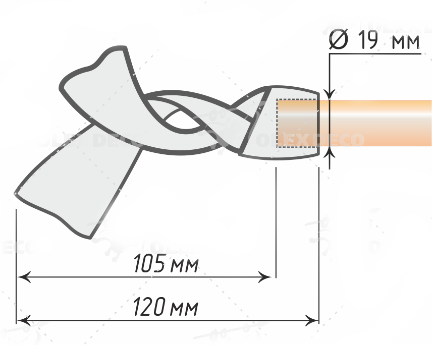 Обращаем Ваше внимание, что трубы длиной 280, 320, 360 и 400 см составлены из двух равных труб с помощью соединительного элемента для круглых труб d19 мм. Для стабильного монтажа сборного кованого карниза обязательно используется дополнительный кронштейн, устанавливаемый на месте стыка двух половин.