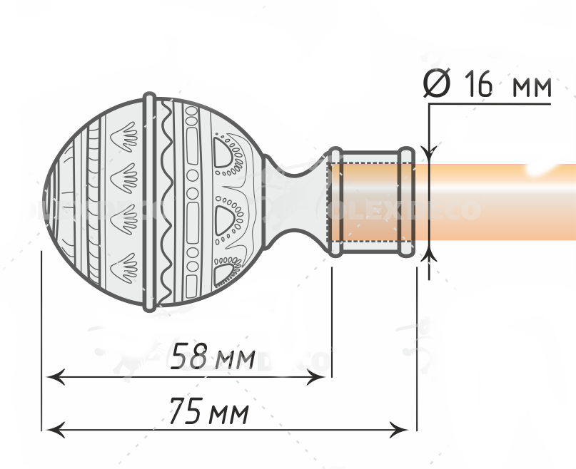 Наконечник "Фаберже" для труб d16 мм кованого карниза. В стоимость входит 1 пара наконечников + шестигранник для крепления наконечников к трубе. Совместимость с другим товаром (соответствует по цвету и диаметру. Размеры и описание можно посмотреть по ссылкам):