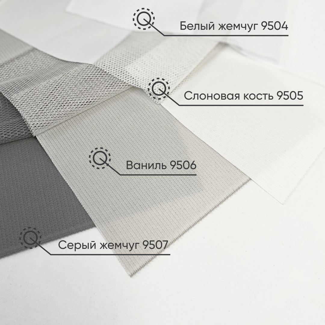 Вертикальные тюлевые жалюзи "Вальс" с карнизом Стандарт без декоративной планки, тканевые ламели коллекции Шуберт, цвет 9511 молочный.