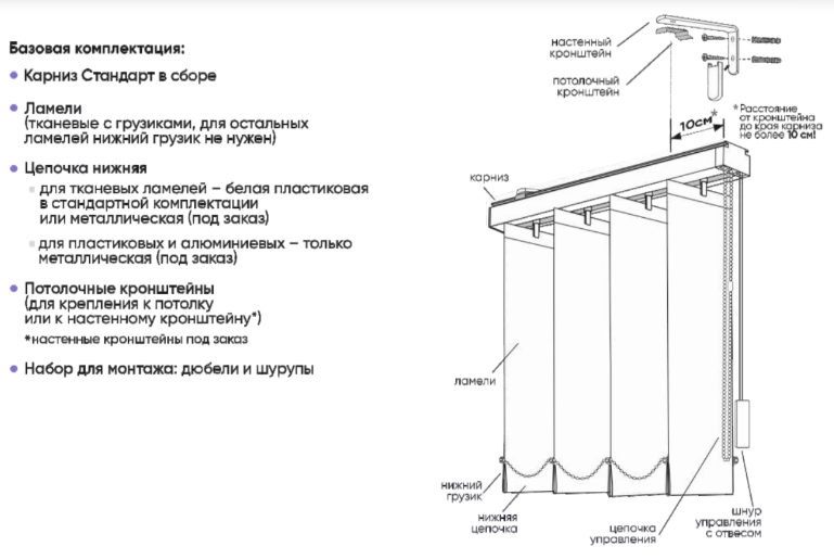 Размеры системы "Вальс"для карниза Стандарт: